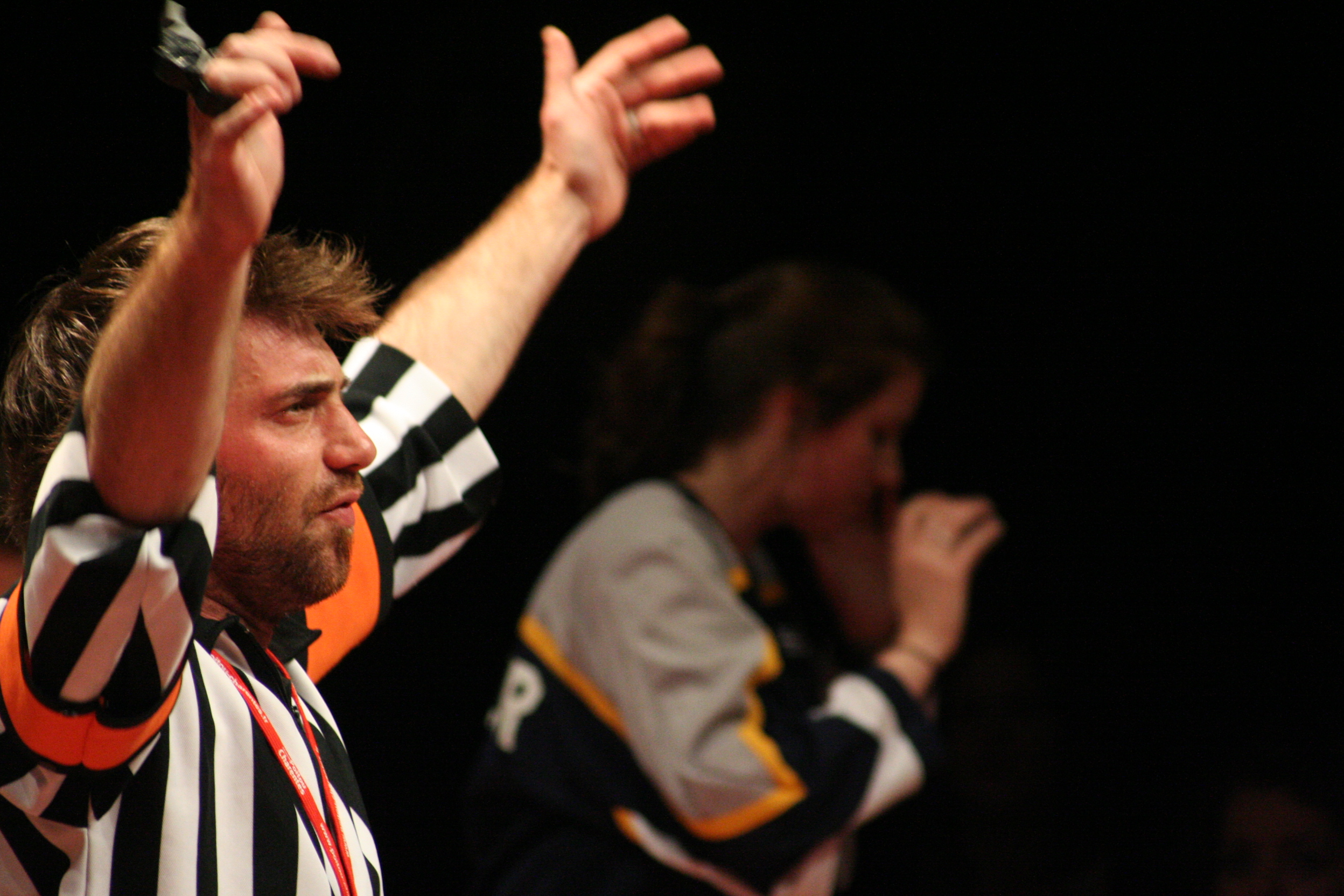 C’est la troisième année que la Ligue Universitaire d’Improvisation de Poitiers me confie généreusement le soin de mettre leurs principales manifestations en images (elle organise notamment un match d’impro par mois à la Maison des Etudiants, devant plus de 300 personnes). Ainsi, j’ai pu à loisir me confronter à la photo de spectacle, dans des conditions pas toujours faciles (surtout quand on n’a pas l’onéreux matériel adéquat !). Même si c’est finalement un peu monotone (lumière, « décor » et cérémonie toujours identiques), cela possède sa part de défi, en partie pour essayer de varier les points de vue, les situations, les cadrages et tenter de rendre au mieux ambiances et situations…