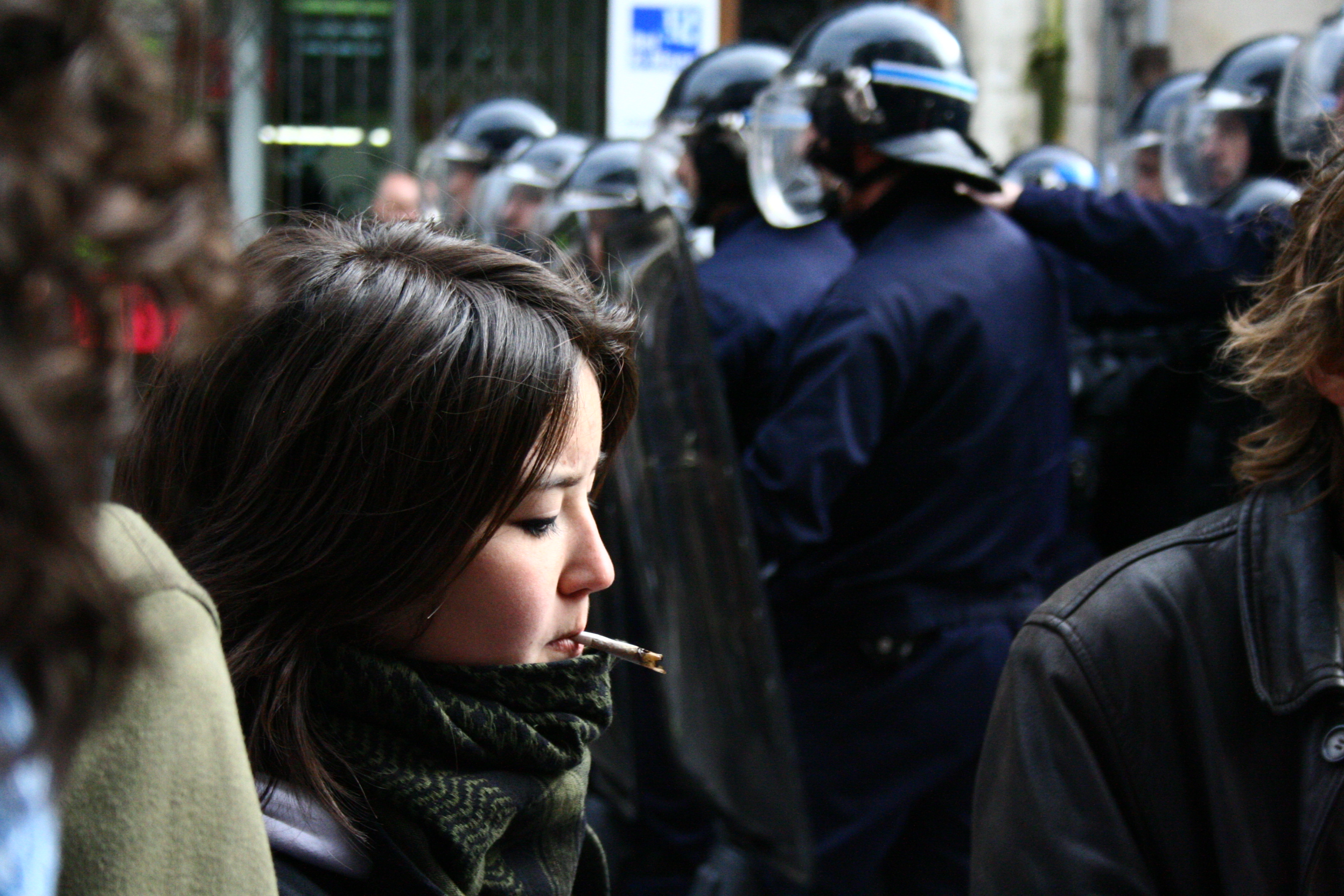 Une jeunesse en colère. J’ai pris cette photo en mai 2008 alors que les lycéens battaient le pavé pour défendre leur idée de l’éducation. Blocage des cours, déambulation et concert de casseroles étaient mis à contribution pour attirer l’attention, tenter d’établir un rapport de force. Des voix s’étaient élevé alors contre la rudesse des forces de l’ordre, mais finalement, rien de plus grave que heurts accidentels et tensions habituelles.