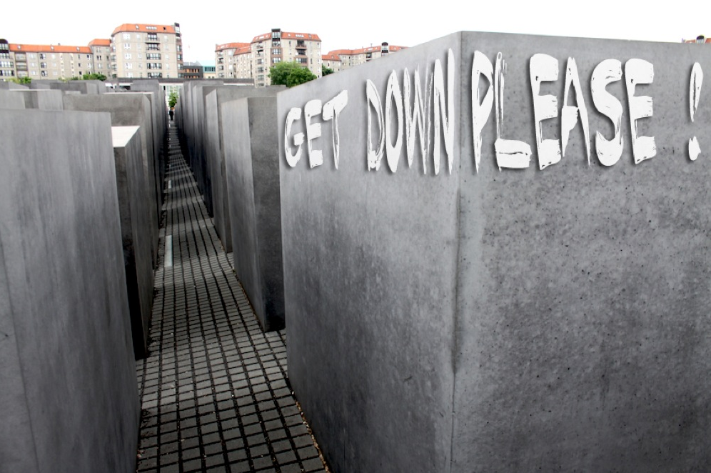Le mémorial de la Shoah, constitué de plus de 2000 stèles, est un espace ouvert au public. Il est interdit d’y crier, d’y courir, et, bien sûr, de monter sur les stèles. Pourtant, c’est exactement comme ça que les visiteurs le parcourent.