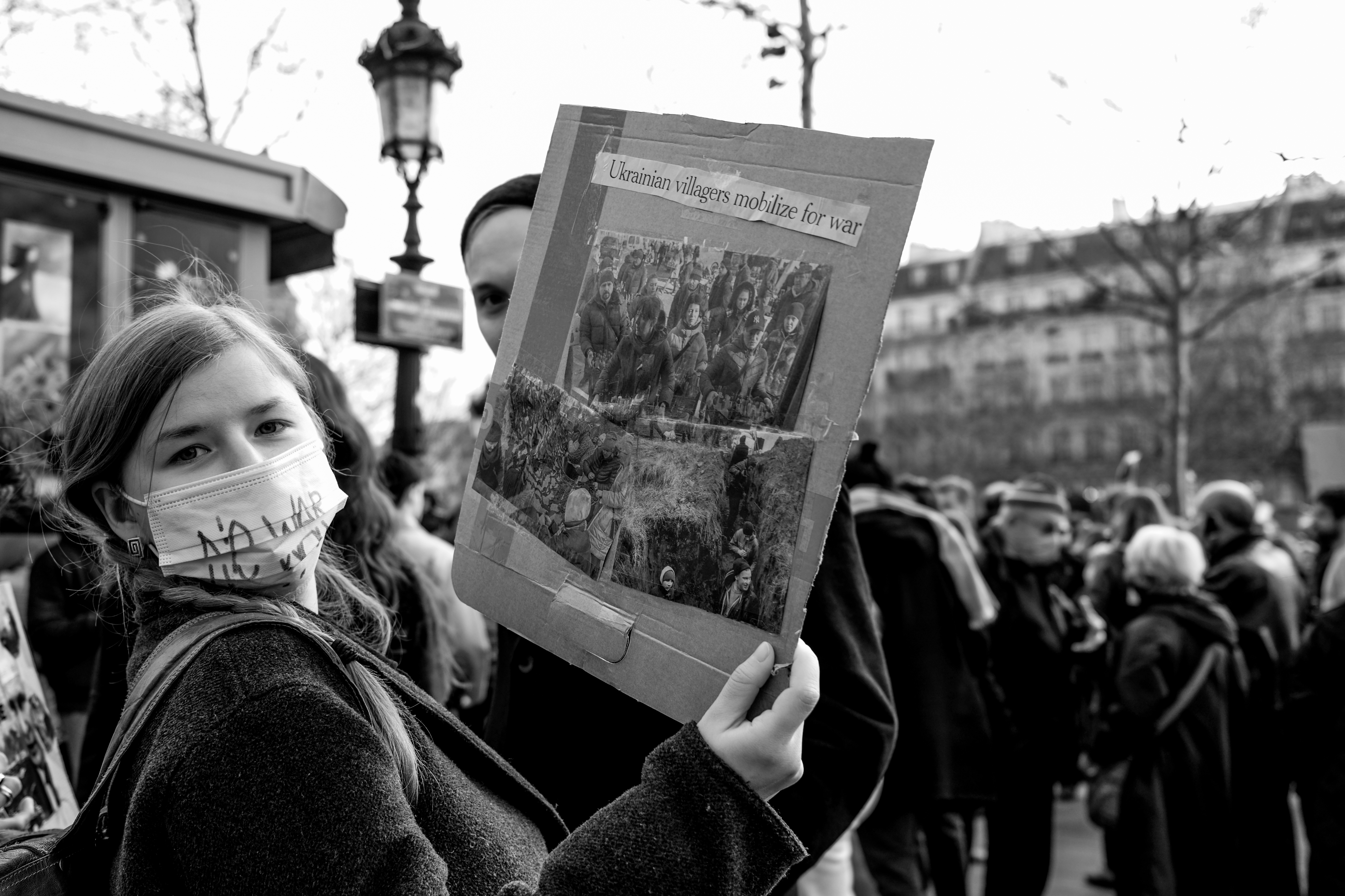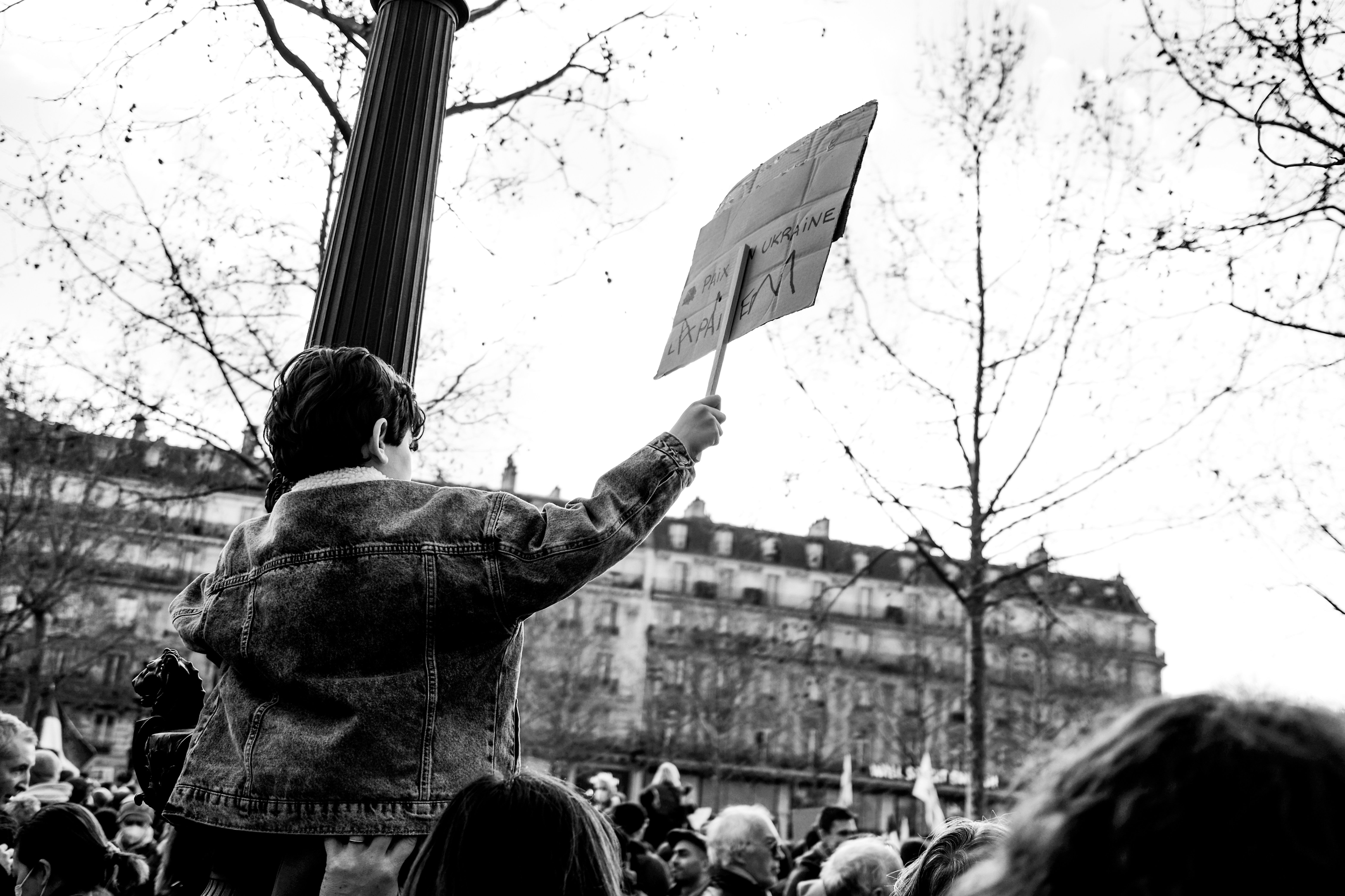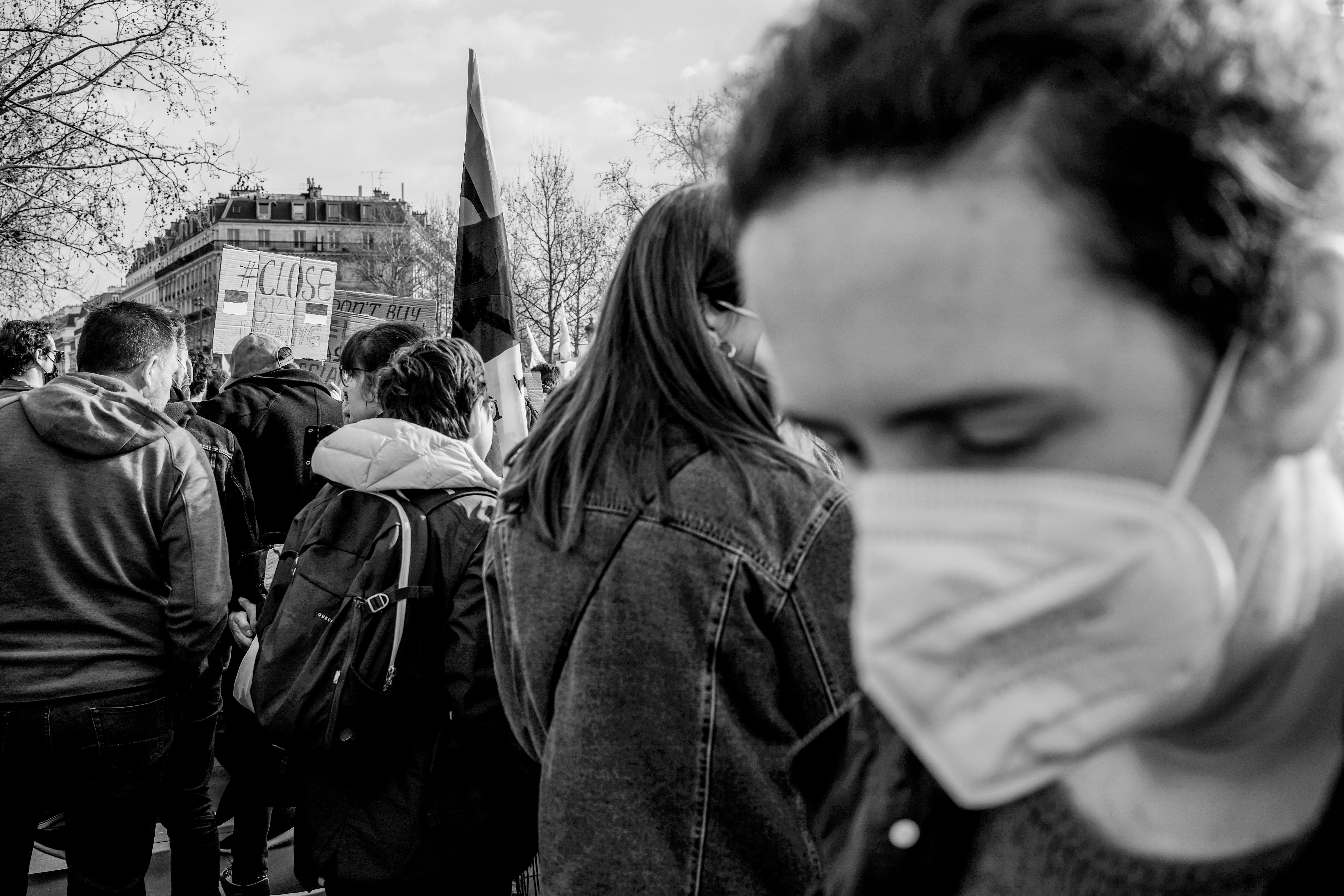 Pour le reste, c’est l’habituel mélange hétéroclite de la manifestation. Du Russe, de l’Ukrainien, du Tunisien venu protester contre la « dictature tunisienne » aussi. Si beaucoup de gens appelaient à « stopper la guerre », tous ne s’entendent pas sur la façon d’y parvenir… Car ce n’était pas spécialement un rassemblement pacifiste. Nombreuses étaient les pancartes appelant de leurs vœux l’implication militaire des pays européens (et de la France) en Ukraine. Pur et simple, ou par le moyen d’une zone d’exclusion aérienne, tant réclamée par le président ukrainien, mais qui est un engagement au combat puisqu’elle implique d’abattre des avions russes.