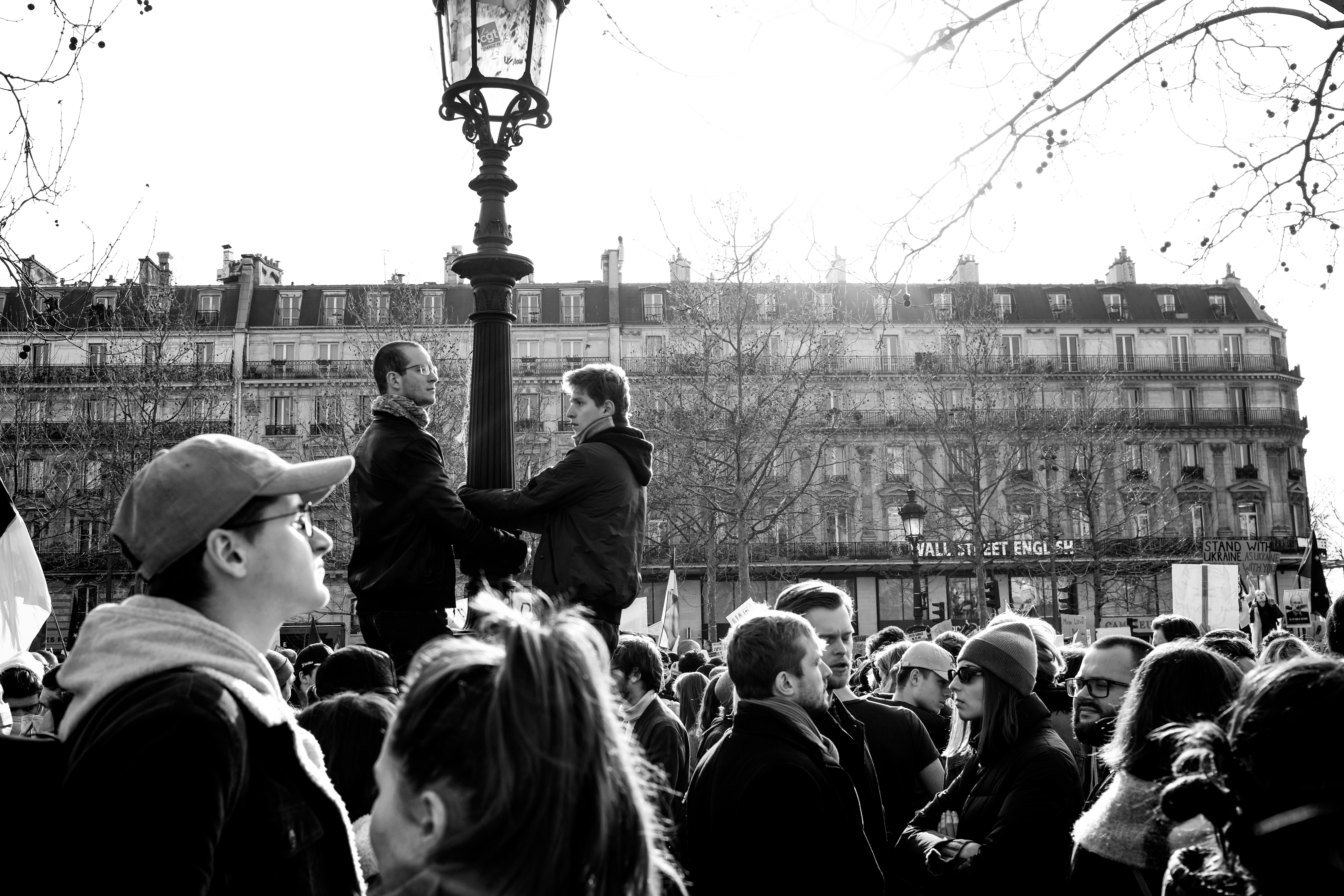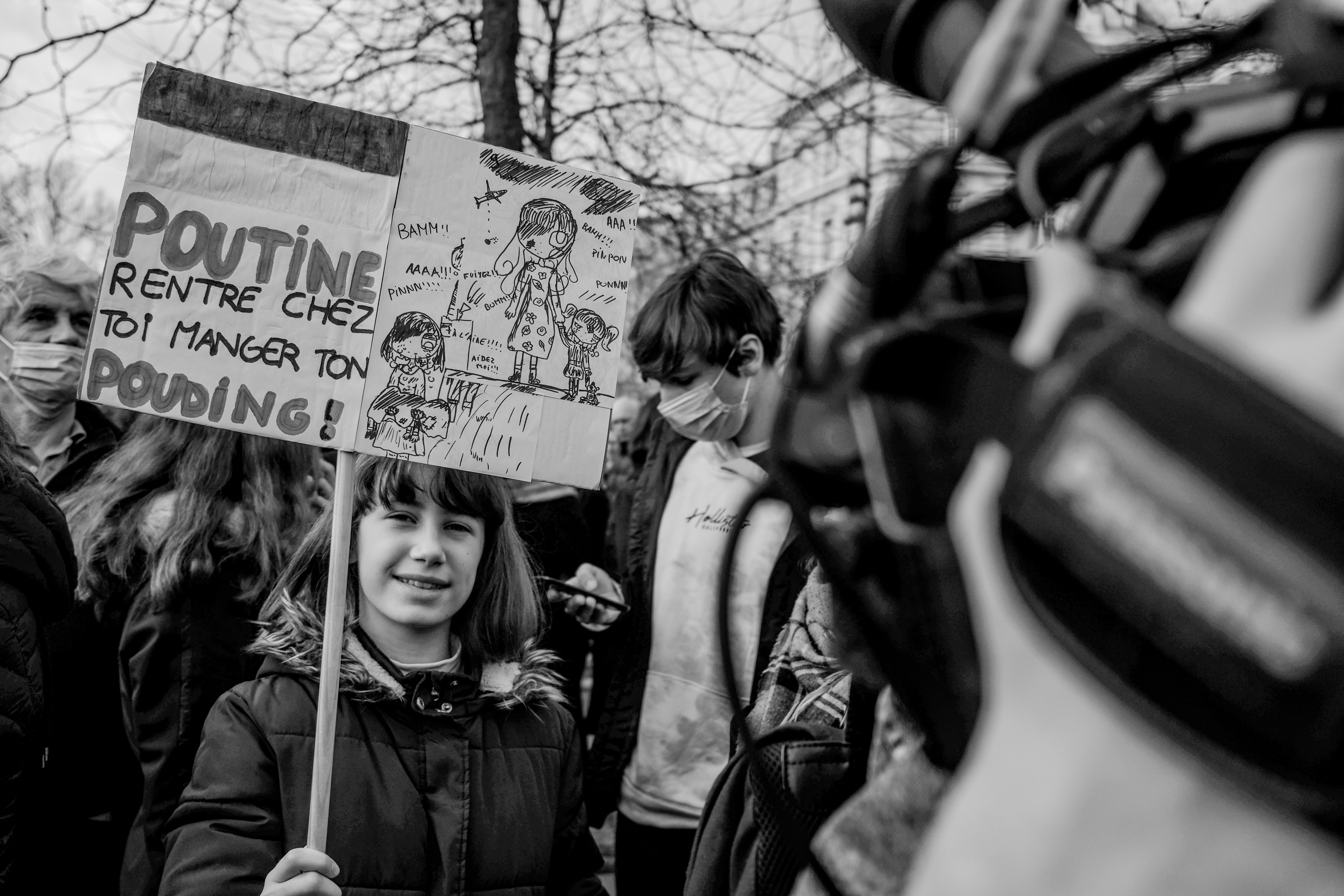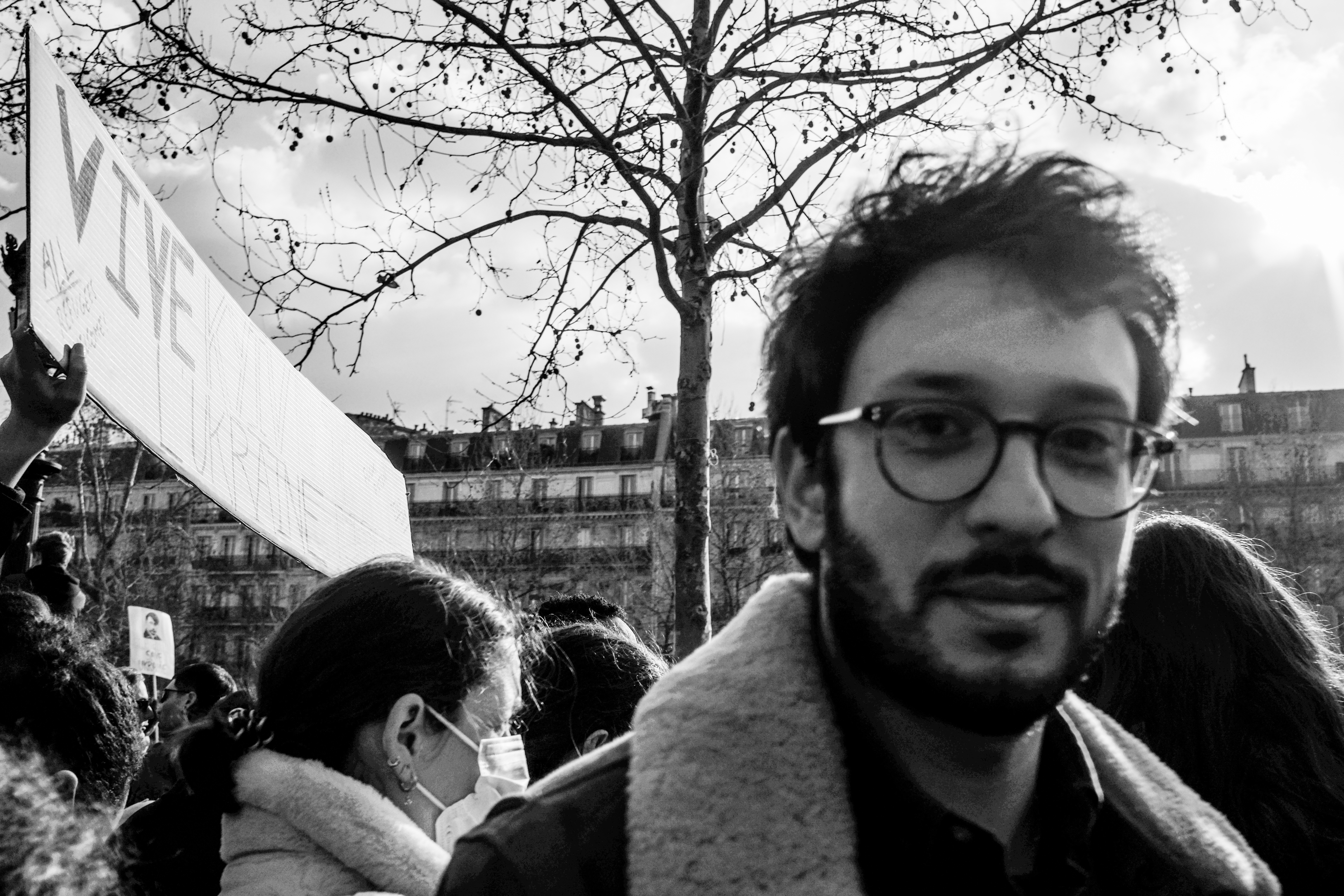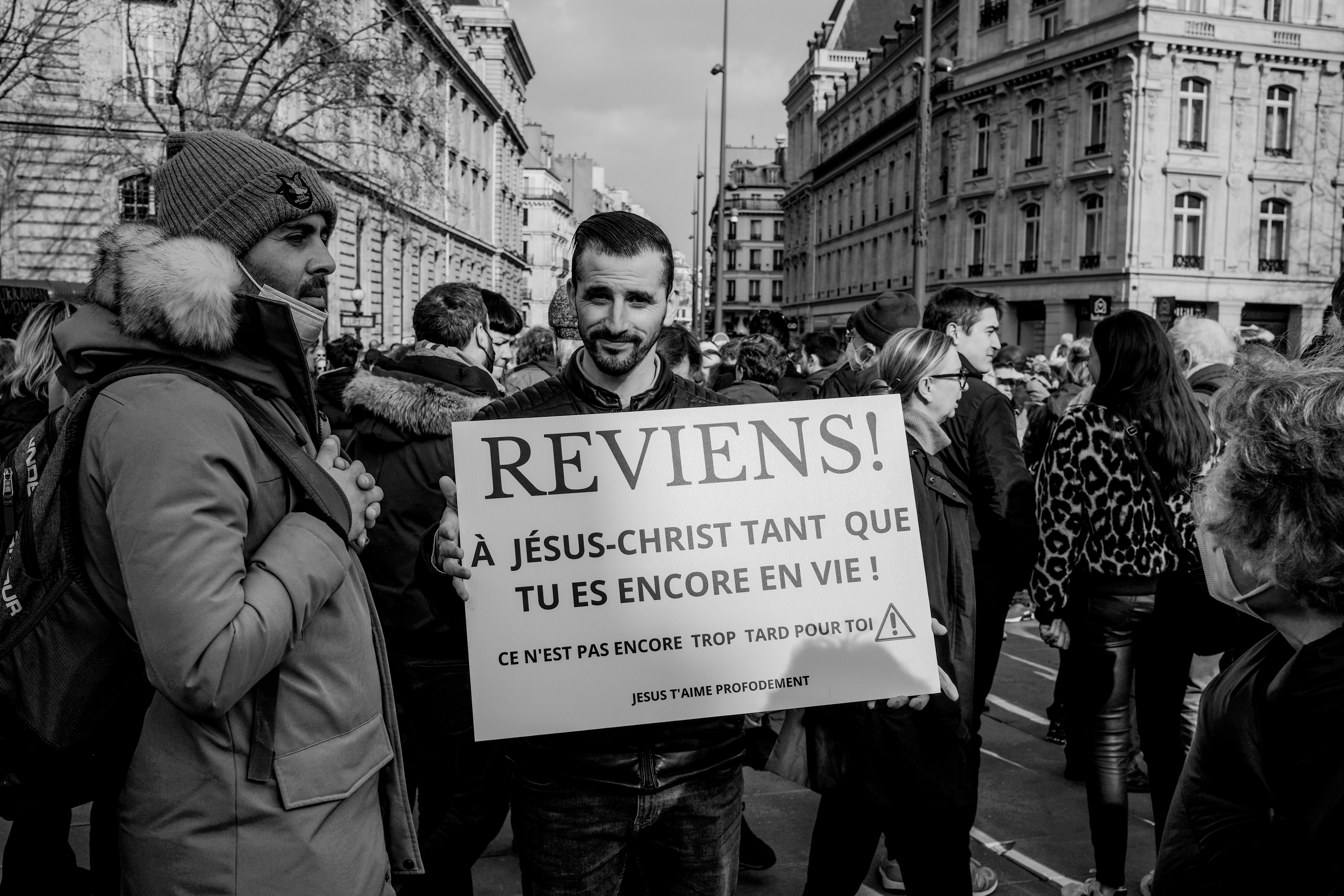 Pour le reste, c’est l’habituel mélange hétéroclite de la manifestation. Du Russe, de l’Ukrainien, du Tunisien venu protester contre la « dictature tunisienne » aussi. Si beaucoup de gens appelaient à « stopper la guerre », tous ne s’entendent pas sur la façon d’y parvenir… Car ce n’était pas spécialement un rassemblement pacifiste. Nombreuses étaient les pancartes appelant de leurs vœux l’implication militaire des pays européens (et de la France) en Ukraine. Pur et simple, ou par le moyen d’une zone d’exclusion aérienne, tant réclamée par le président ukrainien, mais qui est un engagement au combat puisqu’elle implique d’abattre des avions russes.